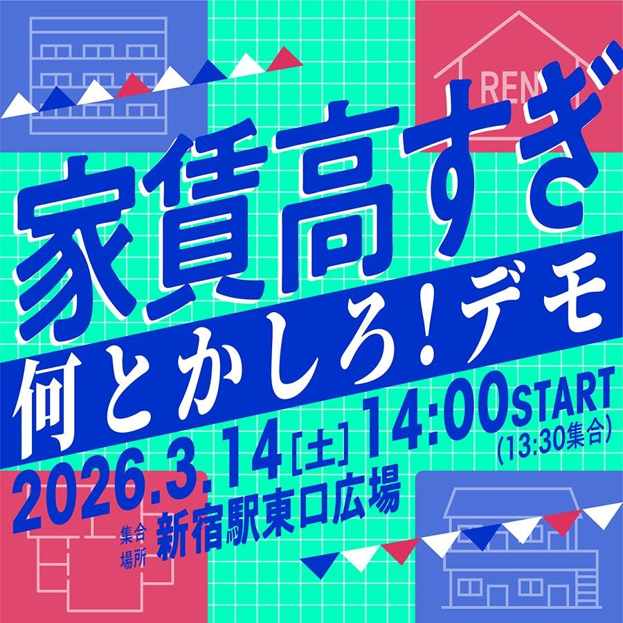 そこで、「住まいの貧困ネット」と首都圏青年ユニオンで呼びかけをおこない、3月14日(土)新宿で「家賃高すぎ。何とかしろ!デモ」を開催することにしました。
